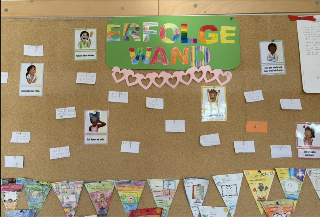 An die Erfolge-Wand hängt jedes Kind einen Zettel nach dem Motto: